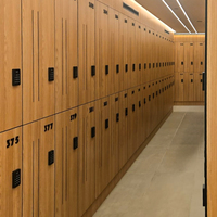 פתרונות ארונות כושר בהתאמה אישית של DEBO, עשויים למינציה בלחץ גבוה, קלים לניקוי, למלונות עם עיצוב עכשווי, עם אחריות לשלוש שנים.